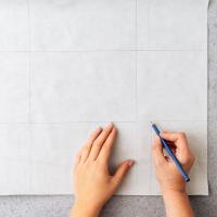 Nun verlängert ihr alle Linien nach außen. An den Längsseiten werden etwa 2cm Überlappung stehen gelassen, damit eine schöne Ecke geformt werden kann.