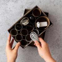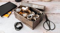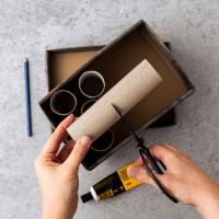 Die Papierrollen auf die entsprechende Höhe des Kartons kürzen und ggf. mit etwas Kleber am Boden des Kartons fixieren.