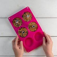 Tipp: Wer keine Silikonformen zuhause hat, kann auch ein Muffinblech mit etwas Frischhaltefolie auslegen.