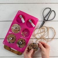 Die Meisenringe aus den Formen rausholen und zum Schluss die Kordel durchfädeln und auf die gewünschte Länge kürzen.