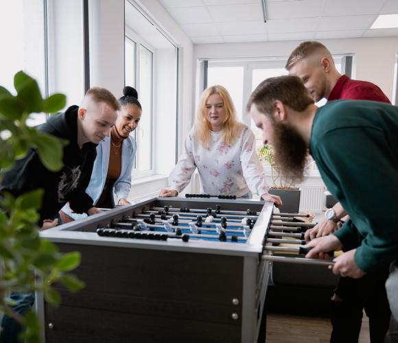 Sicherheit, Struktur, Planbarkeit – ja. Aber auch: Lachen, Menschlichkeit, echte Verbindungen. Wir wollen, dass du gern zur Arbeit kommst. Oder eben: dich gern einloggst.