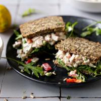 Rucola Sandwich mit leichtem Hähnchenbrustsalat